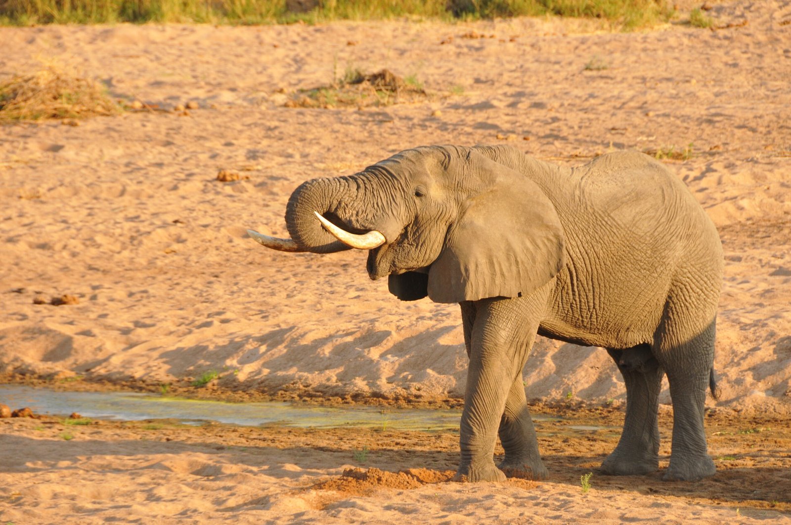 Shade was definitely highly sought after! A few moments later, still enroute to camp from the airstrip, a huge family of elephants brought us to a standstill once again. They were gathered on the dry riverbed, jostling for position under a tree before stretching out into a long train as they headed to the centre of the river. We watched as they used their trunks to dig down for water – a survival skill the elephants of Ruaha have mastered. Swaying in the sunshine, with a flap of ears, their rumbles told us they had found what they were looking for.