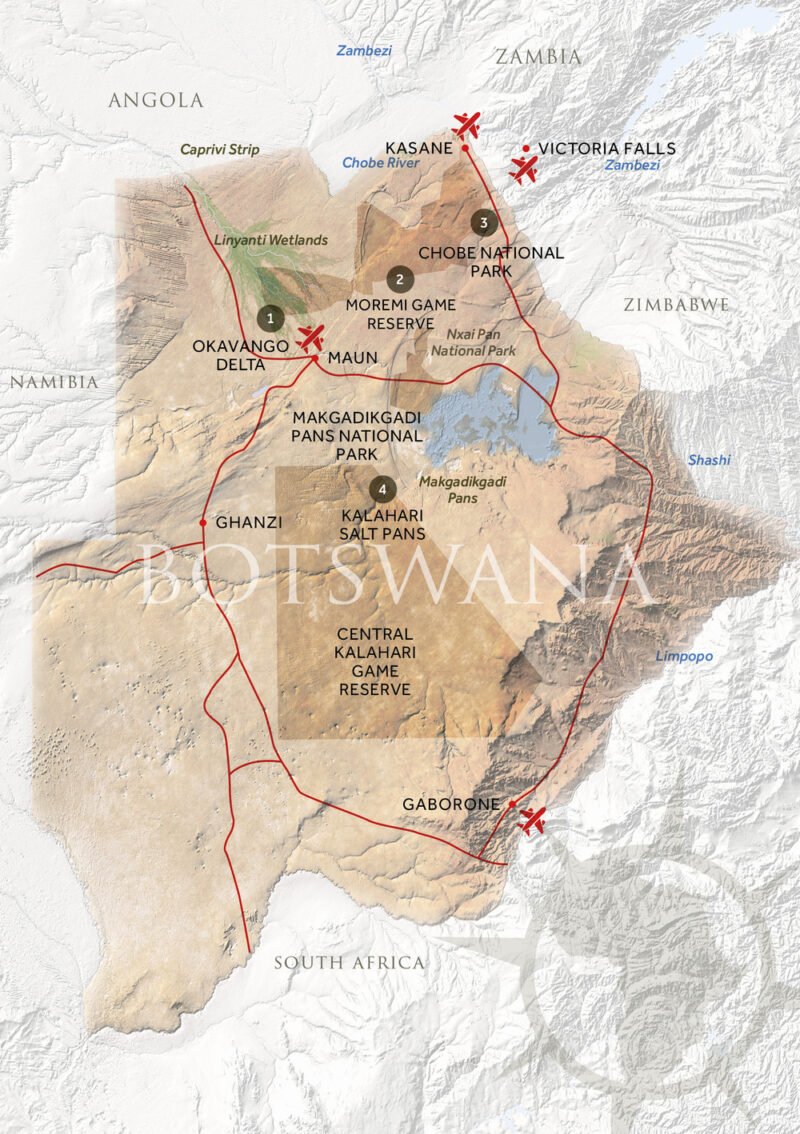 You’ll find a useful guide to Botswana and some of its attractions at the bottom of this page, along with a couple of sample safari journeys to inspire you. All our private safaris are tailor-made – there are many different combinations possible and we work with a multitude of camps and lodges and not just the ones shown in the sample tours. We are happy to suggest combinations using our personal knowledge and first-hand experience of these areas, but if you have a preferred lodge/camp please let us know. For price guides and further information please visit explorersagainstextinction.co.uk
