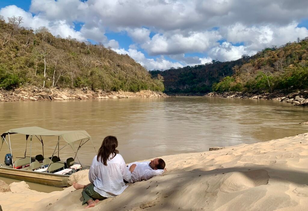 We stayed at Sand Rivers – this stylish lodge has just five beautiful open-fronted riverside rooms and three hillside suites – all with phenomenal views of the river. The guiding was exceptional. To find out more please click here.