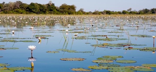 The Okavango Delta in Botswana is a huge and unique inland river delta. The Okavango River flows into a low-lying and very flat area which has gradually silted up with sand from the Kalahari Desert. The Okavango River originates in Angola but it never reaches the sea. Due to the large, flat and shallow area it drains into it ends up being held far away from the ocean. Some of the water drains into the Makgadikgadi Salt Pans creating a home for thousands of flamingos but most of it evaporates. There are larger river deltas in Africa on the Nile and the Niger but they feed into the sea unlike the Okavango. This makes the Delta a totally unique place with awe-inspiring scenery unlike anywhere else on earth.