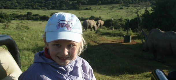 So my own experience. We took our two girls on safari when they were aged 8 and 6. We realised that the would have limited long term memories of it when they grew up, but as both liked animals (or at least the ones in the local zoo) it would be fun for them to enjoy now. We chose a private game-reserve in the Eastern Cape of South Africa for several reasons. Firstly, there is no malaria there so the kids didn’t need to take malaria tablets. Second, it was a fenced camp so there was no prospect of them going for a private “explore” when we weren’t looking. Third, we could have a private game viewing vehicle so as not to annoy our fellow guests and to allow us to return to the lodge whenever we wanted. Fourth, there was a swimming pool for them to go in when not out in the reserve. We stayed three nights, not too long as all children have a limited attention span at that age. We brought check-lists and colouring guides, giving them something to aim for on each day. they had to spot 10 different animals and 5 trees each day to trigger a reward.
